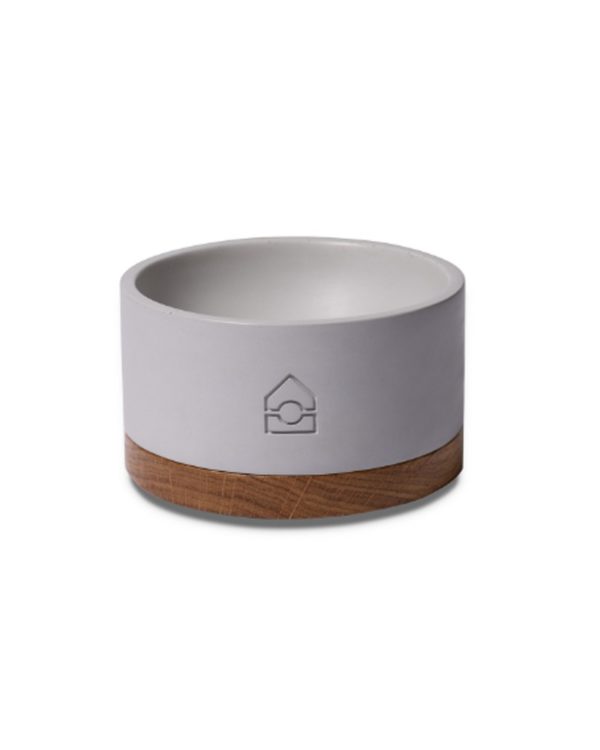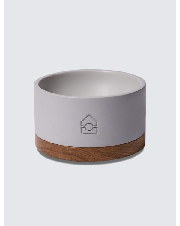 Le bol est réalisé en béton, tandis que la base est confectionnée en chêne naturel. Un design à la fois sobre et surprenant qui font de cette gamelle un objet prestigieux qui convienne aux intérieurs les plus exigeants.
